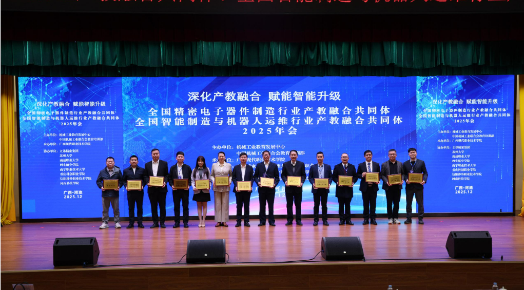 为深入贯彻国家产教融合发展战略,推动智能制造与机器人运维领域人才培养与产业需求精准对接,强化校地校企协同育人机制,提升机械工程学科专业建设水平,2025年12月26日至27日,全国智能制造与机器人运维行业产教融合共同体年会在广西河池隆重召开。西安航空学院机械工程学院院长王永锋、智能制造工程教研室主任田国良受邀参会,与来自全国相关高校、行业龙头企业、科研院所的专家学者齐聚一堂,共同探讨该领域产教融合的创新路径、人才培养痛点及行业发展新趋势。