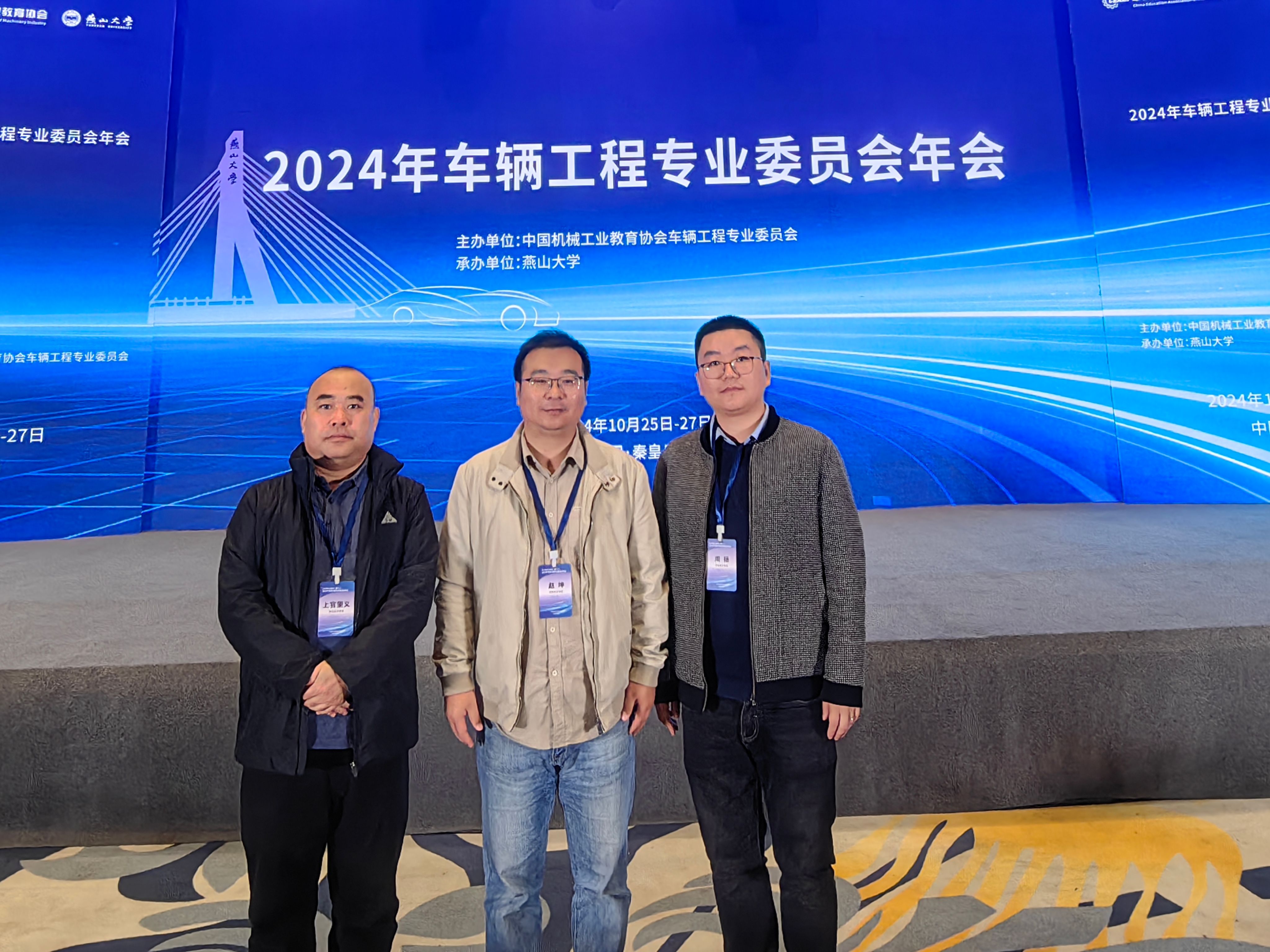 近日,2024全国车辆工程专业委员会年会在秦皇岛隆重举行。本次大会是由中国机械工业教育协会车辆工程专业委员会主办,燕山大学车辆与能源学院承办,年会吸引了全国各地车辆工程领域的100多所高校和企业的近200名专家学者和业界精英,我校车辆工程学院副院长赵坤、车辆工程教研室主任周扬和专业负责人上官望义参加了此次大会。