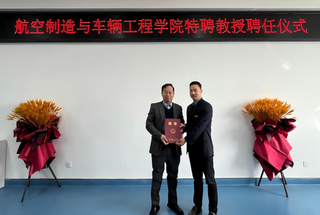 3月20日,航空制造与车辆工程学院举行特聘教授聘任仪式,聘任彭彪林、林刚两位教授为学院特聘教授。学院领导班子成员、各专业负责人及教师代表出席仪式,仪式由院长王永锋主持。