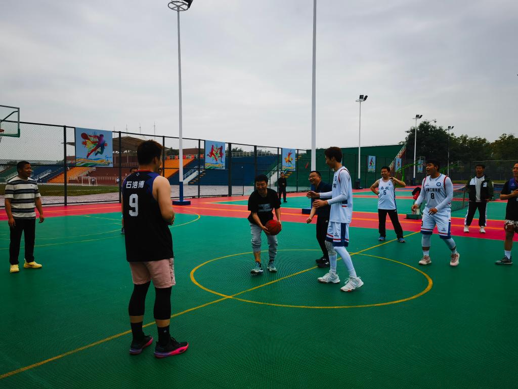 球场上,两支队伍都精神饱满,本着“师生情谊第一,比赛输赢第二”的原则,每一名场上的队员都展现出不凡的实力;师生们同场竞技,娴熟的技术和默契的配合演绎出一次次精彩瞬间。这里有激烈的竞赛对抗,紧张的角逐,这里有欢乐的笑声和此起彼伏的助威声、呐喊声,每一个精彩的抢断、默契的配合、帅气精准的投篮,都能赢得现场阵阵欢呼。最后随着裁判结束哨声的响起,教师队以100:97赢得了本次友谊赛的胜利。