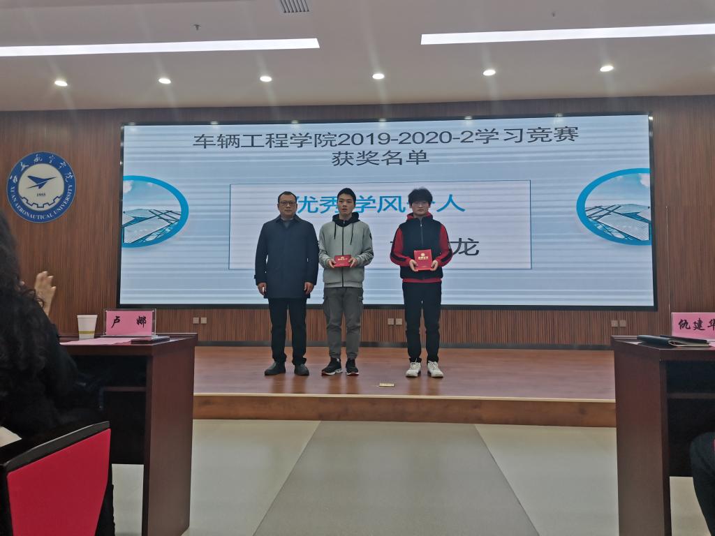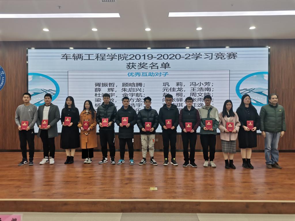 首先,学院往年优秀毕业生通过视频送上了对母校的祝福和对学弟学妹们的期望。院长张耀虎宣读《关于车辆工程学院2019-2020-2学习竞赛中优秀个人、优秀学风班、优秀学风宿舍、互助对子的决定》。到场嘉宾及学院领导为获得表彰的学生颁发证书及奖品。四位同学深情地诵读彰显学院学风而创作的《车辆学子》,展现了车辆学子意气风发勇往直前的精神面貌。获奖学生代表胥振哲进行了发言。最后,党总支书记邓北川对学院学风现状和评估期间同学们的表现予以肯定,希望同学们能戒骄戒躁带领全宿舍、全班级以及全学院的学风建设更上一层楼。